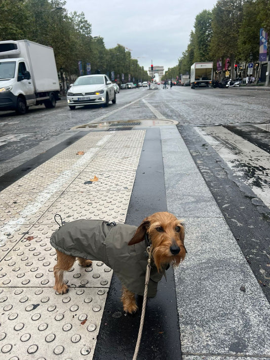 " LE LOUVRE DACHSHUND RAINCOAT" 80 GRAMS ( Loose Fit )MID-SEASON